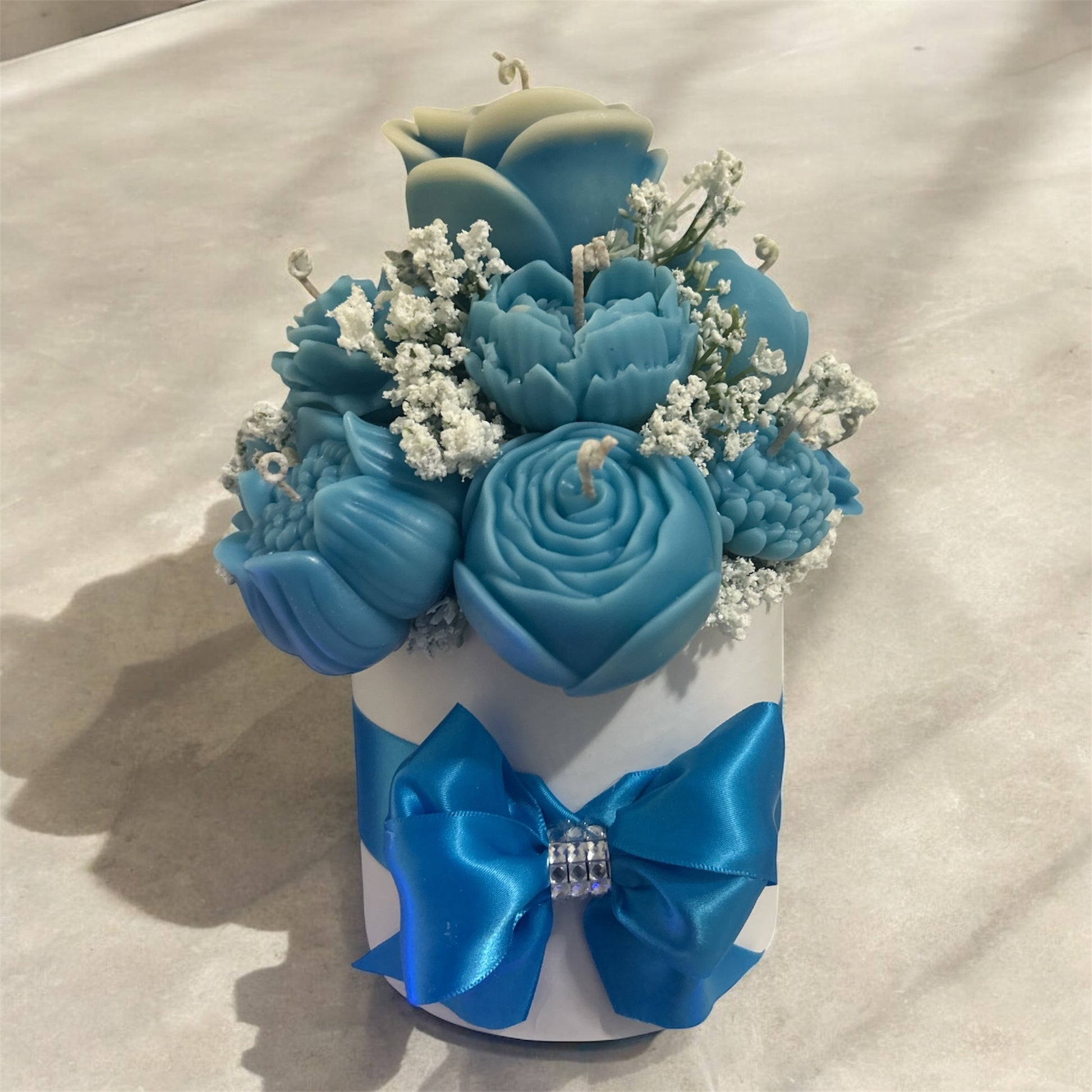 Floral Candle Bouquet – Handmade Wax Flower Arrangement with Decorative Gift Box