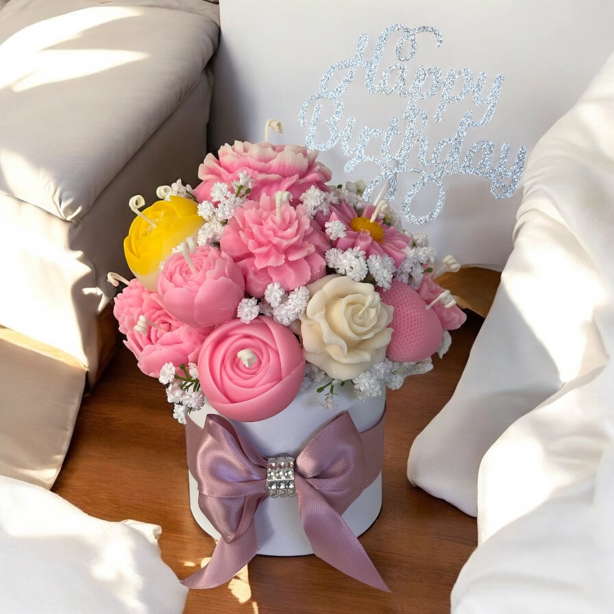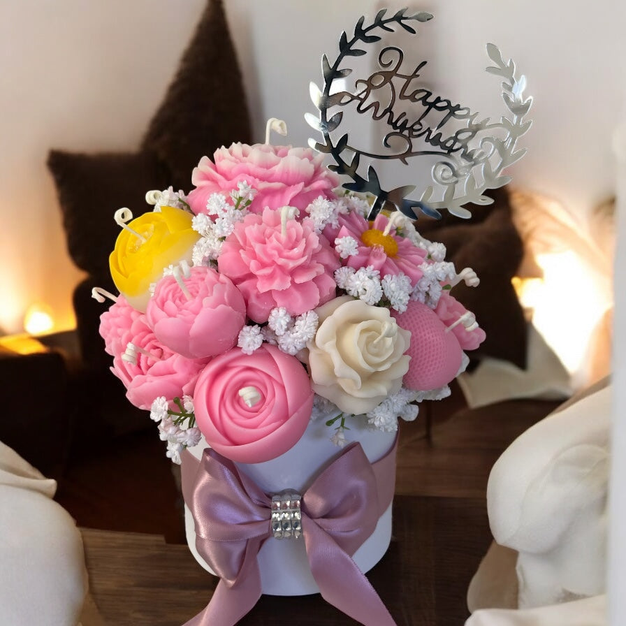 Perfect as a centerpiece or decorative accent, this beautiful bouquet combines the visual appeal of fresh flowers with the warm ambiance of premium candles. Each bloom is meticulously crafted to capture nature's beauty while providing hours of gentle, fragrant candlelight.